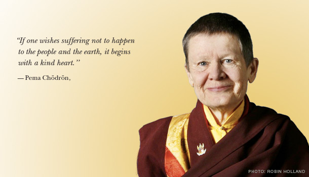 Chödrön: “We all have the inborn wisdom to create a wholesome, uplifted existence for ourselves and others. We can think beyond our little cocoon and try to help this troubled world. Not only will our friends and family benefit, but even our ‘enemies’ will reap the blessings of peace…If these teachings make sense to us, can we commit to them? In these times, do we really have a choice? Do we have the option of living in unconscious self-absorption? When the stakes are so high, do we have the luxury of dragging our feet?” (Selection 108: No Time to Lose, 360)