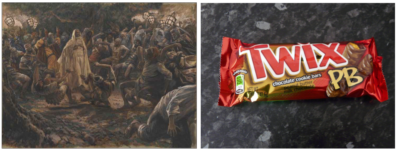 I just find it fascinating and kind of funny that Jesus responds to aggression not by running away or fighting, but by engaging in an exchange that literally knocks the Roman soldiers off their feet. And I also find it interesting that Simon Peter felt the need to defend Jesus, when Jesus actually had things going just the way he wanted them to go.