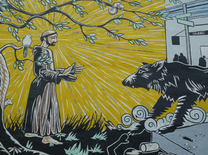 However, even with the proper pronunciation of his hometown, I wonder if many of us still do think of this saint as perhaps a little too kind and too gentle for his own good. He was known to have cried every day, he preached sermons to birds, he rubbed sticks together as if he were playing the violin, he called the sun his brother and the moon his sister, and he sang so many French songs that some people think that that is why he was called “Francis.” And today, most of us know him as “the birdbath saint.” I actually used to think that it was a requirement for all Episcopal churches to have a birdbath statue of St. Francis.