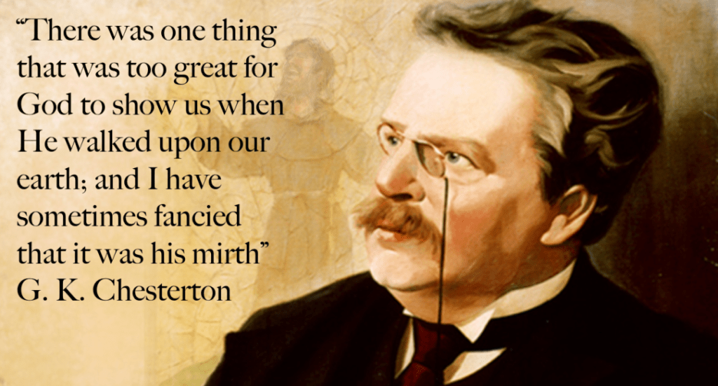 The great Anglican author GK Chesterton concluded his great book Orthodoxy with these words. He said, “Joy, which was the small publicity of the pagan, is the gigantic secret of the Christian. And as I close this chaotic volume I open again the strange small book from which all Christianity came; and I am again haunted by a kind of confirmation. The tremendous figure which fills the Gospels towers in this respect, as in every other, above all the thinkers who ever thought themselves tall. His pathos was natural, almost casual. The Stoics, ancient and modern, were proud of concealing their tears. He never concealed his tears; he showed them plainly on his open face at any daily sight, such as the far sight of his native city. Yet he concealed something. Solemn supermen and imperial diplomatists are proud of restraining their anger. He never restrained his anger. He flung furniture down the front steps of the Temple and asked men how they expected to escape the damnation of hell. Yet he restrained something. I say it with reverence; there was in that shattering personality a thread that must be called shyness. There was something that he hid from all men when he went up a mountain to pray. There was something that he covered by abrupt silence or impetuous isolation. There was some one thing that was too great for God to show us when he walked upon our earth, and I have sometimes fancied that it was his mirth.”[1]
