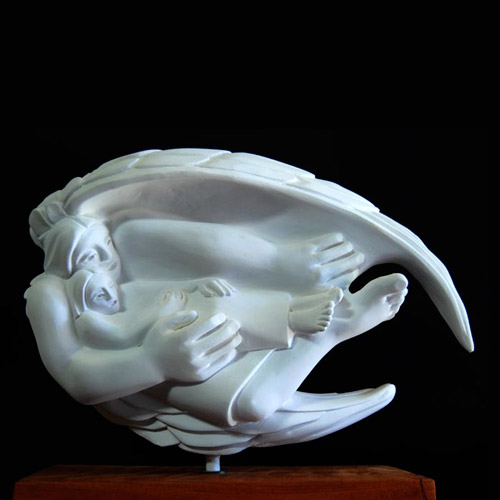 Our prayer book references this Gospel when it says, “The very love we have for each other in Christ brings deep sorrow when we are parted by death. Jesus himself wept at the grave of his friend. So, while we rejoice that one we love has entered into the nearer presence of our Lord, we sorrow in sympathy with those who mourn.” Grief is appropriate and we grieve for as much and for as long as we need. Even Jesus, who knew that resurrection was only moments away for his friend Lazarus, still wept for him. When we grieve, we open ourselves up to receiving the comfort and embrace of the God, who according to our reading from Revelation, wipes away every tear from our eyes (Romans 7:17). I love that this reading from Revelation 7 also mentions angels (7:11), heavenly creatures whom Connie portrayed frequently in her artwork, including within a plaster sculpture titled “Carry Me Home,” which might be my favorite piece by her. You can see it on page 15: someone with Connie’s haircut is tucked snugly between the bosom and armpit of a mighty angel, with her head resting on the angel’s cheek, covered by the shadow of its wings. This sculpture invites us to be held and comforted by the God who sees our tears as prayers and who, according to the Psalms, collects our tears in his bottle (Ps. 56:8).