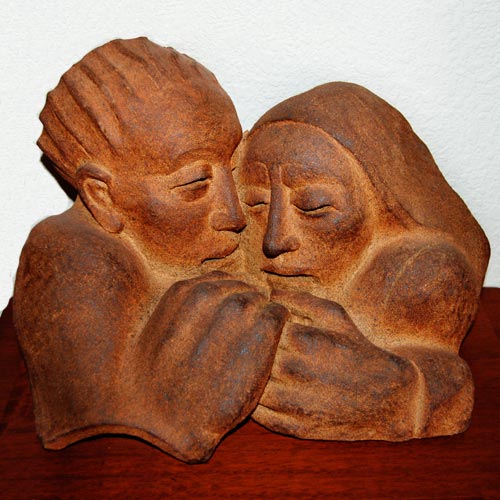 In our Gospel for today, we hear John’s account of Mary and Martha, who are both overwhelmed with grief, telling Jesus, “If you had been here, our brother Lazarus would not have died.” After the conversation between Martha and Jesus, in which Jesus reveals himself as the Resurrection and the Life, Mary approaches Jesus and she begins to weep. Jesus responds to Mary’s tears by weeping himself (John 11:35). The shortest verse of the entire Bible (“Jesus wept”) packs a powerful emotional and theological punch, revealing God as One who enters fully into our sorrow and grief. I imagine Jesus putting his arms around Mary and holding her; and the two of them leaning into each other like the two figures in Connie’s clay sculpture.