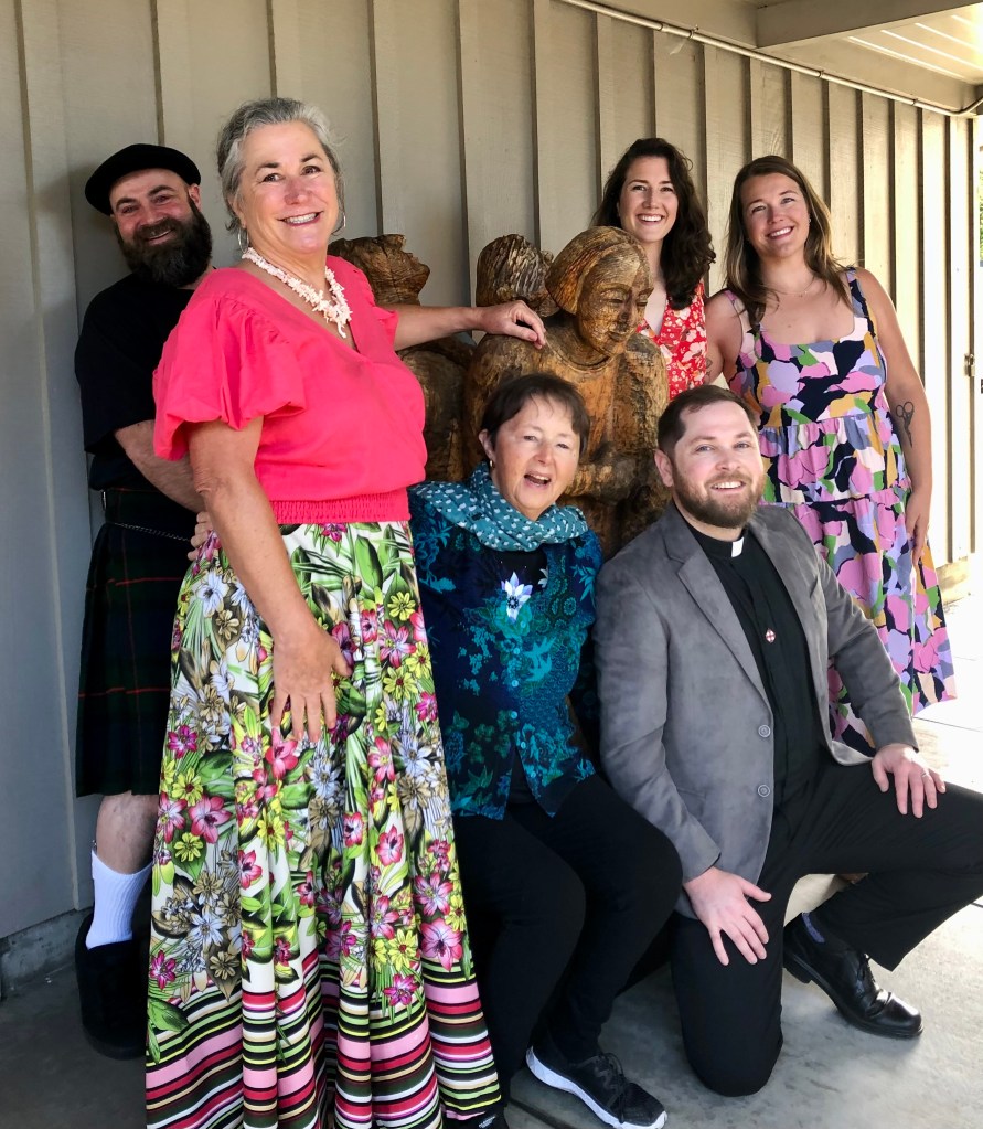 Today we also grieve. Connie was a founding member and pillar of our parochial mission church in Trinidad Sts. Martha and Mary. And I had the privilege to worship with her there several times, especially on the church’s matronal feast day, the feast of the church’s matron saints (Martha and Mary) which is July 29th (12 days from today). And this year, in honor of their feast day, we are going to bless our chapel courtyard as the Sts. Martha and Mary courtyard on Sunday July 31st at 12:30 and you’re all invited to be part of that. That courtyard is now the home of “Our Good Angels,” a wooden sculpture that previously decorated the church in Trinidad and which was sculpted by Connie. I encourage you to visit it after the service today.