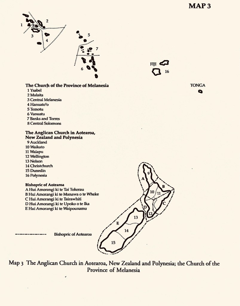 [12] “By this time, many Māori had experienced ‘being Anglican’ for nearly forty years, and yet not one Māori signature was attached to the first Constitution.” Jenny Te Paa-Daniel, “Leadership,” 277.