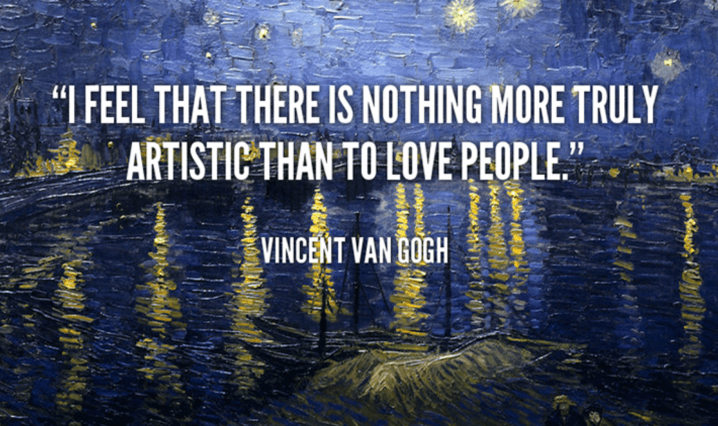 [7] “You’re kind to painters, and be sure that the more I think about it the more I feel that there’s nothing more genuinely artistic than to love people.” Vincent van Gogh, Letter 682 to Theo van Gogh. Arles, Tuesday Sunday September 18, 1888, https://vangoghletters.org/vg/letters/let682/letter.html