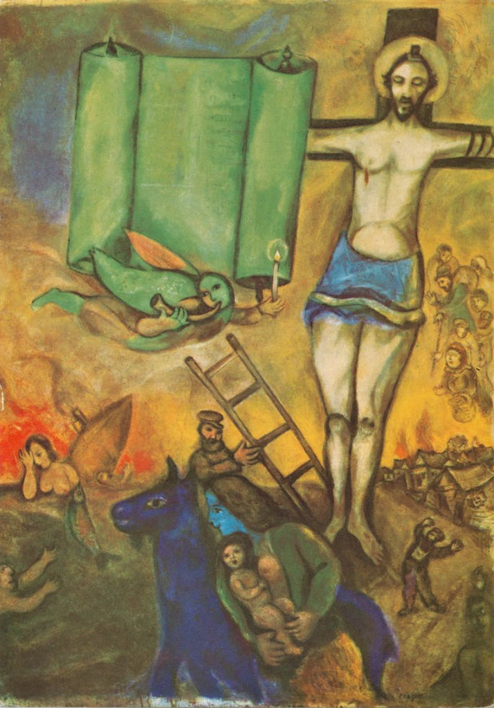 Jesus says, “They do all their deeds to be seen by others; for they make their phylacteries broad and their fringes long” (Matt 23:5). Here he is describing two Jewish practices and symbols known as tefillin and tzitzit (or tassels). These were both meant to serve as tangible reminders of their identity as beloved children of God. The phylacteries, or tefillin, are small leather boxes that contain verses of the Torah written in Hebrew on kosher parchment.[3] These boxes are strapped with leather bands to the head and the arm of the practitioner. The box on the arm points to the heart so that the person wearing the tefllin is reminded to love God with their all heart and mind as they rest prayerfully in their belovedness. If you look at the cover of your bulletin, you will see a Marc Chagall painting which portrays Jesus wearing tefillin even while on the Cross. It’s not hard to imagine Jesus wearing tefillin because we know that Jesus wore the other sartorial symbol that he describes in today’s Gospels: the tassles or tzitzit. In the Book of Numbers, God tells Moses that the Israelites are to make tassels on the corner of their garments, as a tangible reminder of their identity as beloved children of God.[4] Here is a prayer shawl (tallit) that I bought in Jerusalem and you can see the tassels on the corners. We know that Jesus wore these tassels because earlier in Matthew’s Gospel, a sick woman is healed by touching not the hem of his garment (which we usually hear) but the tassel (tzitzit or kraspedou) of his garment.[5] So again, Jesus is not criticizing the symbols (which are meant to serve as reminders of God’s love), but rather their misuse by those who turn them into props for their own self-aggrandizement, by those who make the phylacteries extra-large and the tassels extra-long to be seen and admired by others.