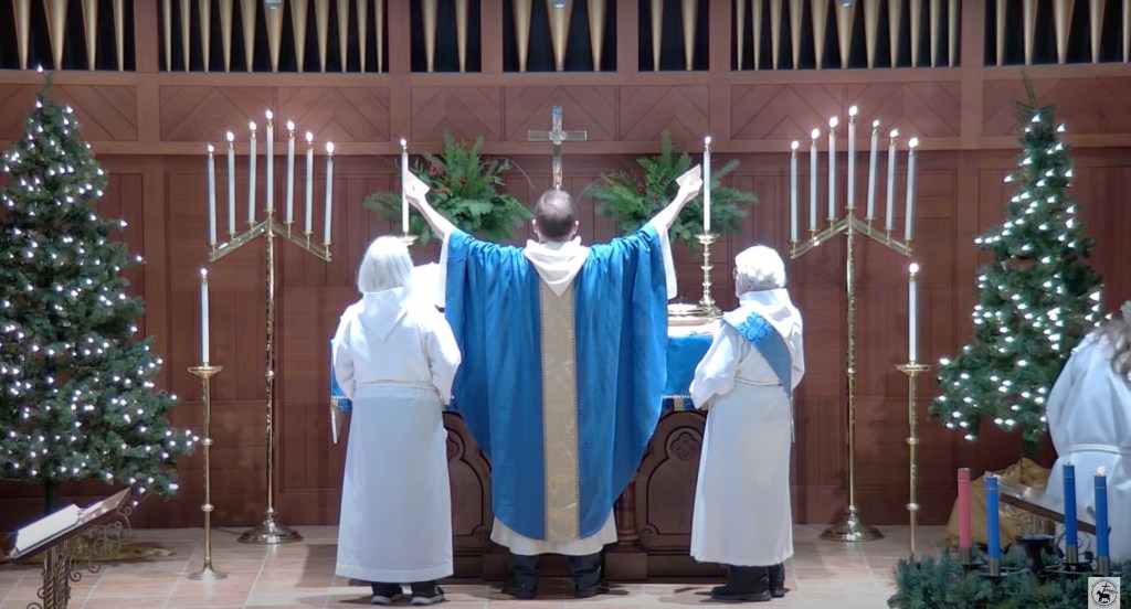 My friends, I am looking forward to celebrating another Advent with you by literally looking forward together to the Adventus of Christ. When we celebrate Christmas on December 24 and 25, we will return to the versus populum formation since that is a season to celebrate the Incarnation of Christ among us. However, we are not quite there yet.