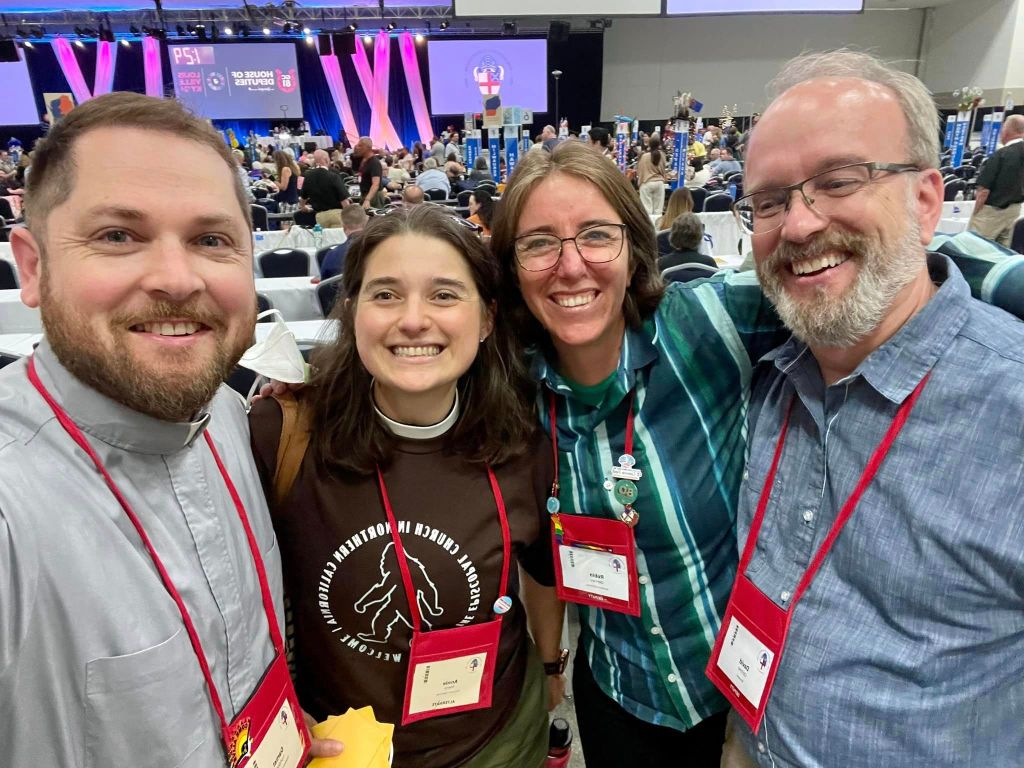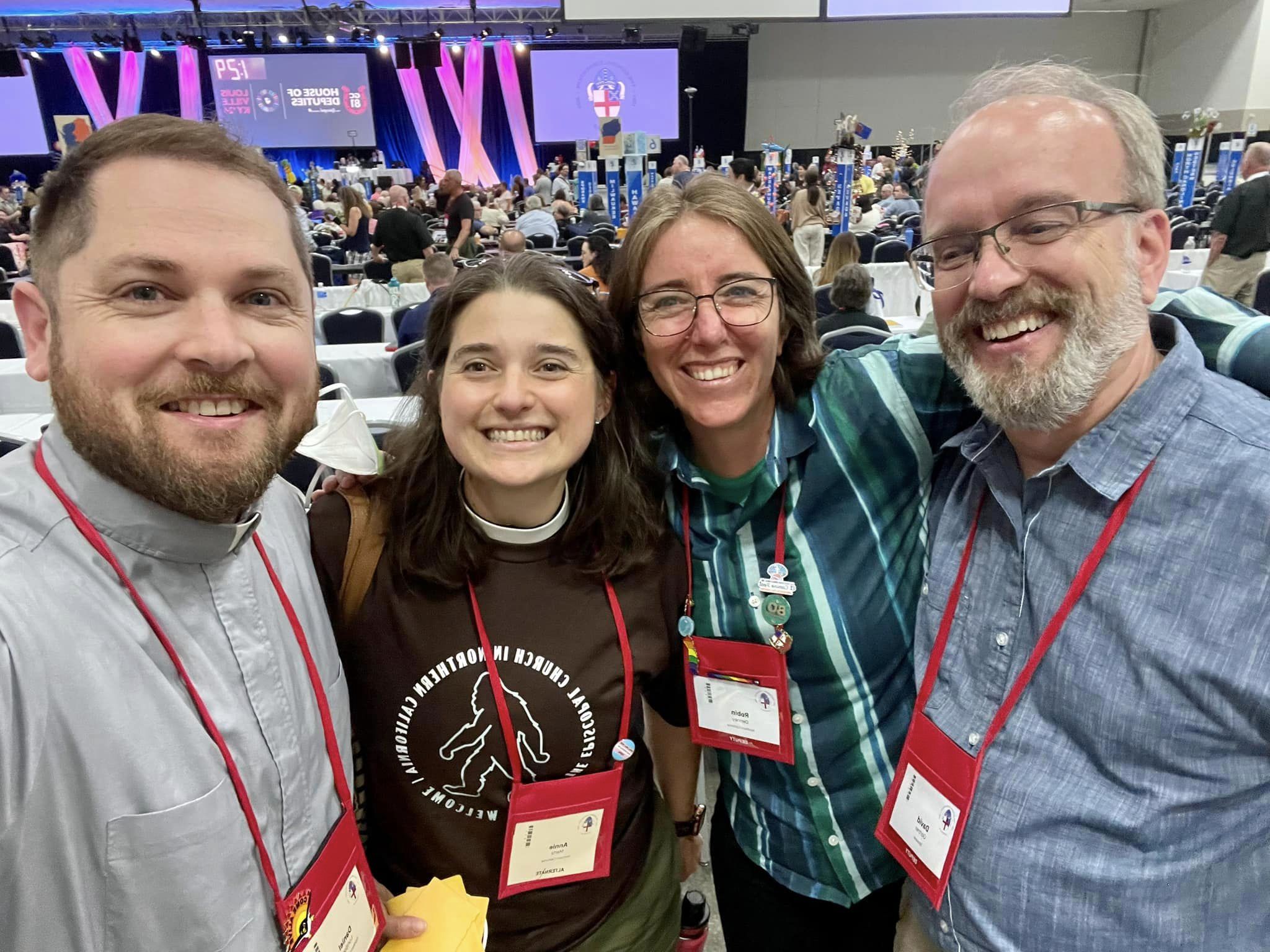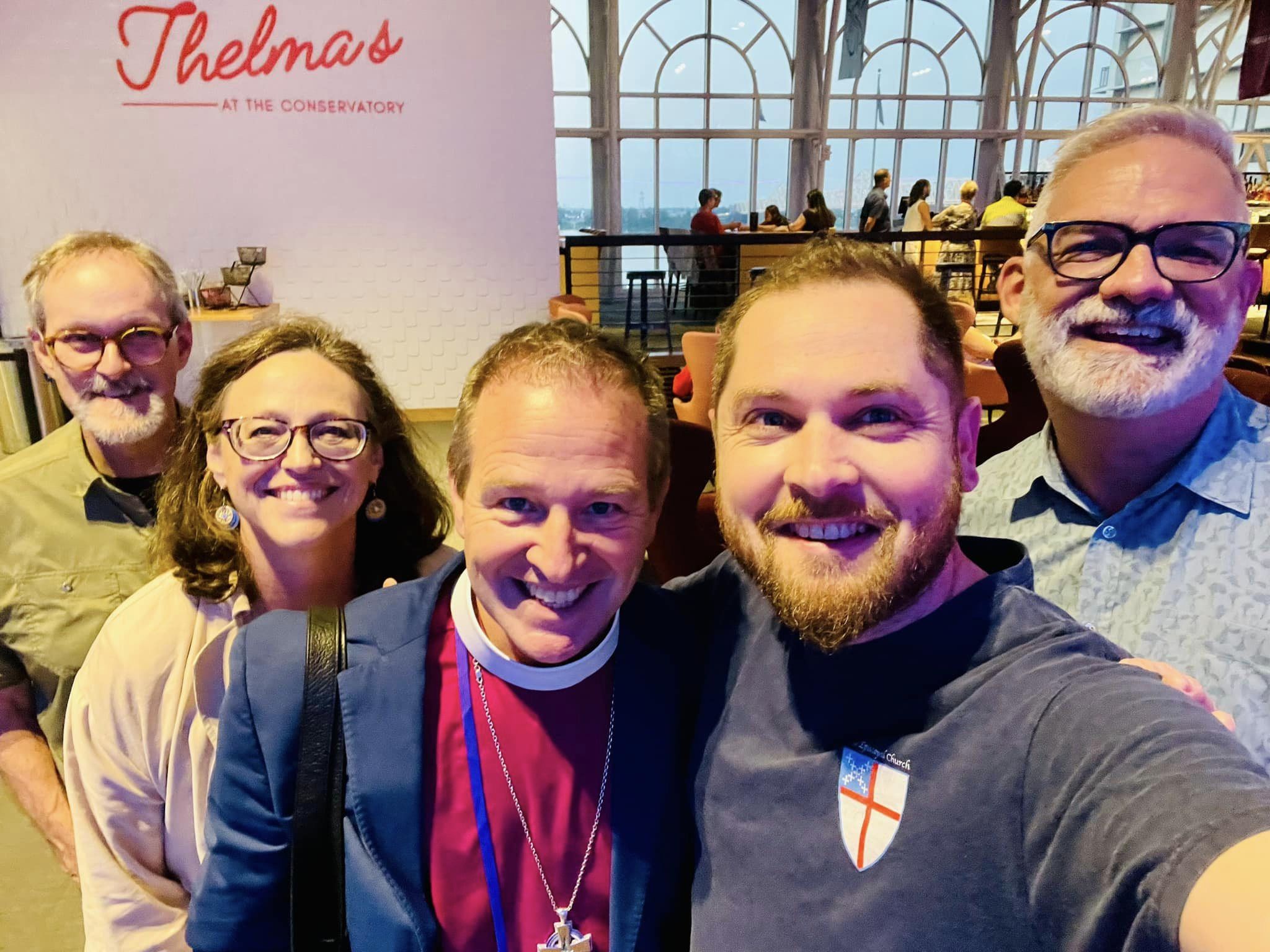 House of Deputies Chaplain the Rev. Lester Mackenzie The Rev. Jim Richardson, Bishop Megan Traquair, Bishop Thomas Brown (Maine), and Jay ElmquistJim+ and Bishop Robert Wright (Atlanta)