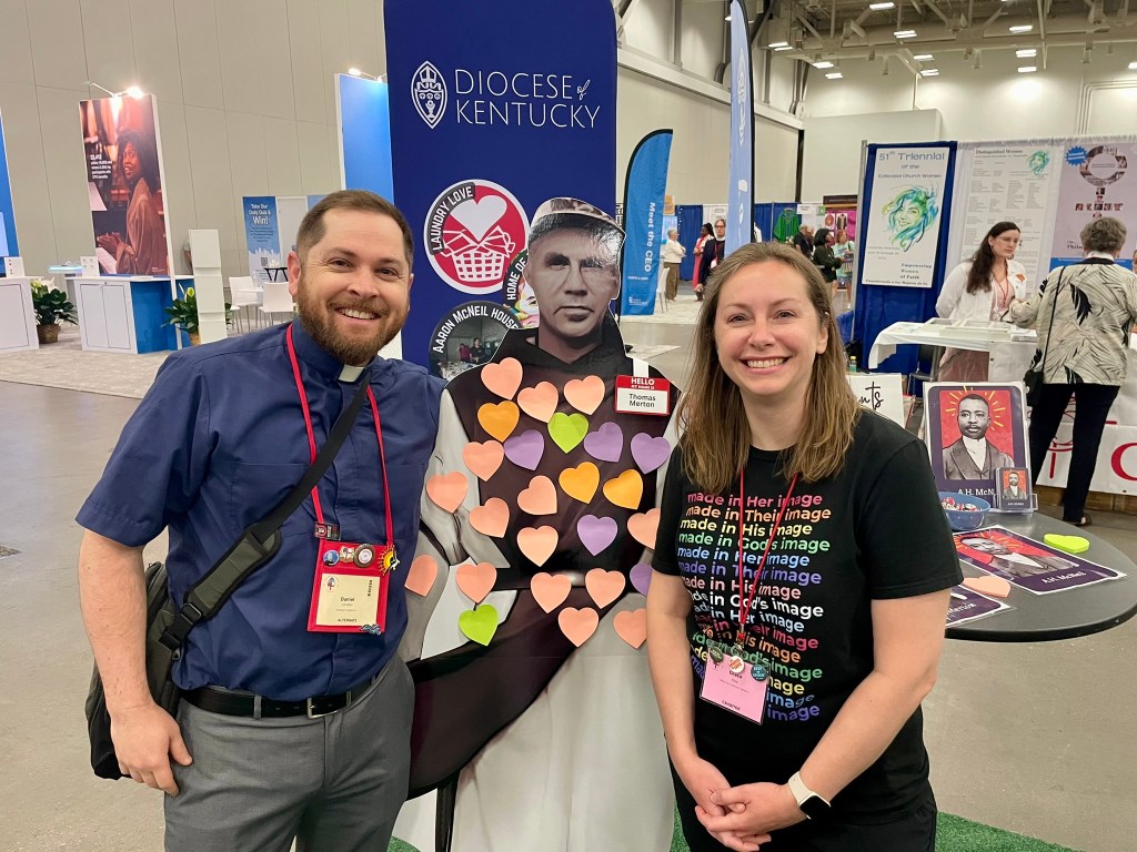 I was thrilled to attend General Convention in Louisville KY, where my favorite modern mystic Thomas Merton had a vision of everyone “shining like the sun” on the now-famous street corner: Fourth St. and Muhammad Ali Blvd. I was not expecting this vision to become such a “touchstone” for our entire convention, which is exactly what our new presiding bishop-elect Sean Rowe called it in his opening remarks, moments after he was elected. Bishop Rowe concluded his remarks with these words from Merton: “What really matters [in times of drastic change] is openness, readiness, attention, courage to face risk.” It was an honor to bear witness to the many ways the Episcopal Church embodied these virtues throughout the week by adopting resolutions that reaffirm our commitment to inclusivity, creation care, racial reconciliation, ecumenical and interfaith relations, and peace and justice for Israelis and Palestinians. I believe Thomas Merton would have been most proud.