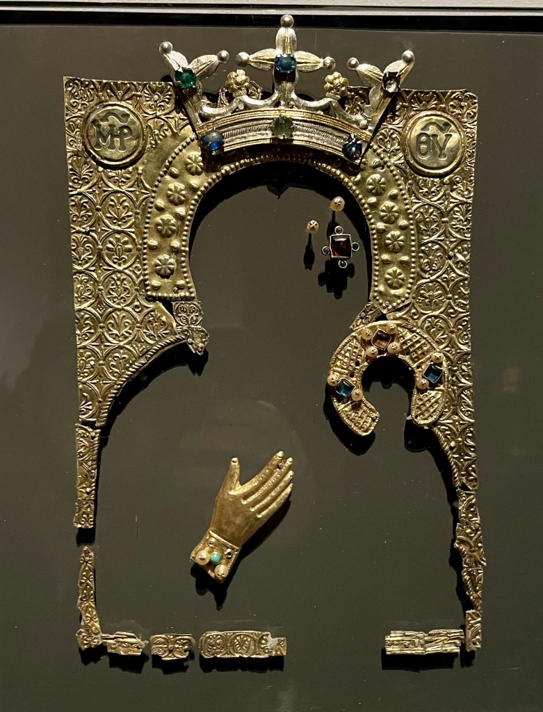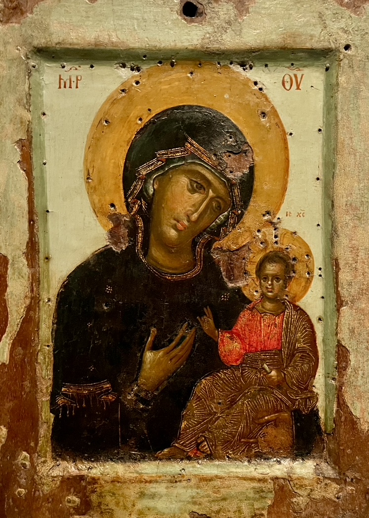 This Christmas, I invite you to access your heart sense and “put together” in your heart the wonders and mysteries of your own life, as Mary did. This invitation is not an abstract one. Our tradition teaches us an embodied way to access our heart sense. When I was in New York City last week, I visited the MET, where they had an exhibit of medieval art from Siena Italy; and there was an icon of Mary with Child that is traditionally celebrated as a work of Saint Luke himself, the traditional author of the Gospel we just heard. In this image, baby Jesus offers a blessing, while Mary holds him in her left arm as her right hand is held over her heart. Religious art and iconography teach us how to access our heart sense in an embodied way: Mary and the apostles are often portrayed as holding their hands over their hearts.