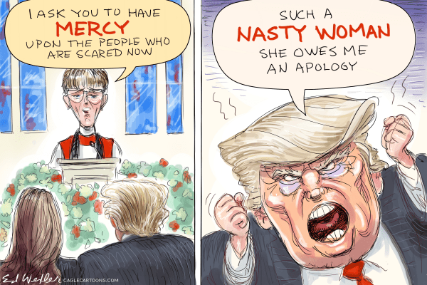 And all the bishops that I know, including Bishop Mariann Budde (whom I had the privilege of meeting five years ago), do not speak prophetically without first immersing themselves in prayer, especially in prayer for the person or people to whom they are speaking or challenging. In St. Aelred of Rievaulx’s Spiritual Friendship, he talks about the role of prayer for the prophet when he says, “Remember how the Prophet Nathan offered words of genuine admonishment to David when the king yielded to lust and then added murder to adultery. Out of respect for his royal majesty, the prophet did not accuse him bluntly nor aggressively. We can even imagine the prophet praying for the king’s ultimate good when he prudently told the truth to the king through the slant of a powerful parable.”[2] We can also easily imagine Jesus praying for the ultimate good of his listeners in Nazareth when he spoke to them prophetically. And the bishops who speak truth to power do not do so without praying daily for those people in power.