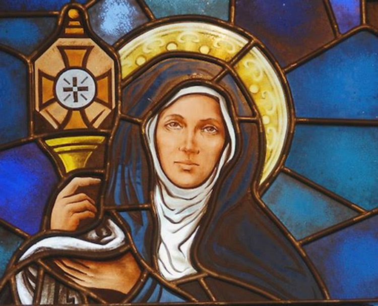 [2] “When the Saracens entered the cloister of the monastery, the Lady made them bring her to the entrance of the refectory and bring a small box where there was the Blessed Sacrament of the Body of our Lord Jesus Christ. Throwing herself prostrate on the ground in prayer, she begged with tears, saying among other things: ‘Lord, look upon these servants of yours, because I cannot protect them.’ Then the witness heard a voice of wonderful sweetness: ‘I will always defend you!’ The Lady then prayed for the city, saying: ‘Lord, please defend the city as well!’ The same voice resounded and said: ‘The city will endure many dangers, but it will be defended.’ Then the Lady turned to the sisters and told them: ‘Do not be afraid, because I am a hostage for you so that you will not suffer any harm now nor any other time as long as you wish to obey God’s commandments.’ Then the Saracens left in such a way that they did not do any harm or damage.” Clare of Assisi, “The Acts of the Process of Canonization,” 9.2., Early Documents, 165, as quoted in Ila Delio, OSF, Clare of Assisi: A Heart Full of Love (Cincinnati OH: Franciscan Media, 1999), 81.