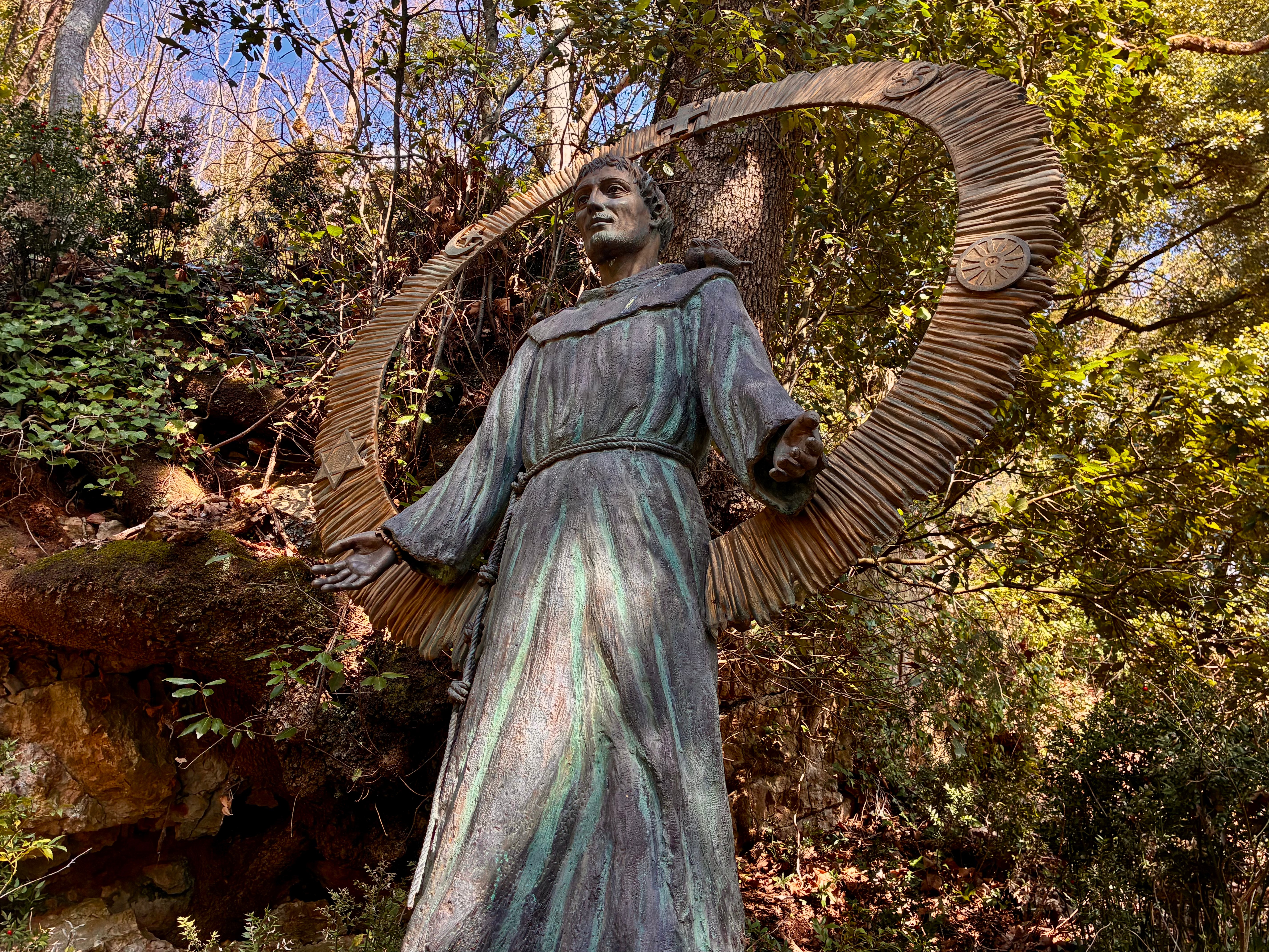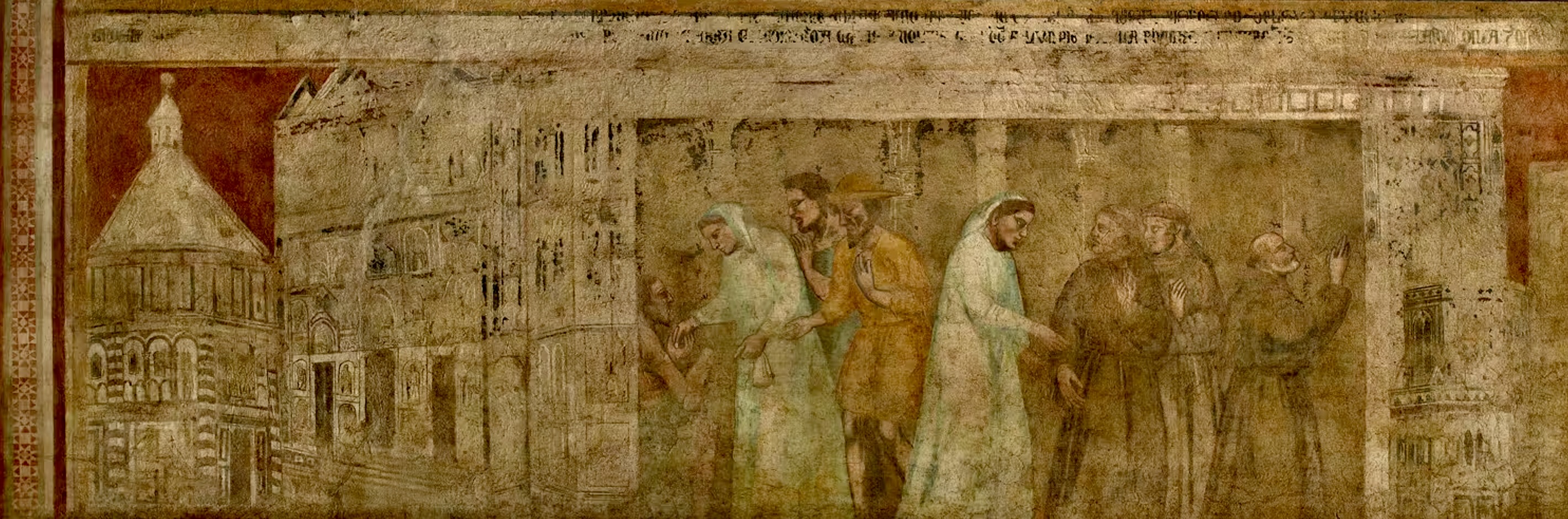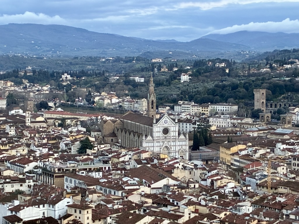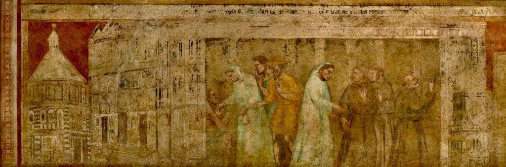 Since I felt especially honored to see the prayer caves of St. Francis’s earliest companions, I’d like to conclude with a brief story from The Legend of the Three Companions that illustrates this movement from merely looking to deeper seeing.[6] At around the year 1209, two of the first-generation friars were seeking hospitality one day in the city of Florence. Covered in dirt and earth and mud, they found a warm portico and asked the owners of the house if they might be permitted to sleep there for the night to keep warm. While the woman of the house began to see them as fellow human beings in need and was therefore about to get them blankets, the husband could only look at them as mere thieves and vagabonds, covered in dung. He convinced his wife that they were going to steal their firewood and thus refused to let her lend them blankets. So, the friars slept in the cold, “warmed only by the glow of divine love, and covered only with the blankets of Lady Poverty.” The next day, the woman of the house went to church for Matins and noticed the friars kneeling devoutly in prayer. She thought, “If these men had been vagabonds and scoundrels as my husband thought, they would not be praying with such reverence.” Then, she began to see them as sincere followers of Christ and learned that they had previously sold all their worldly goods and given all to the poor out of love for God. The text says, “When the woman saw the brothers and how they refused to receive money from others, she went up to them and warmly invited them into her home as guests.” She then persuaded her husband to move from looking at the men as thieves to seeing them as devout followers of Christ. And then this woman consequently convinced others in Florence about the spiritual authenticity and depth of these men dressed in dirty brown robes so that the people of Florence quickly became known for their hospitality to the friars and for their ability to move from merely looking at others with the eyes of condemnation to seeing others with the eyes of compassion. It is no surprise that Florence now boasts the largest Franciscan church in the world, the Basilica of Santa Croce, where this story of the first Franciscans visit to the city is portrayed in a fresco, reminding all Florentines and pilgrims like me to continue to cultivate this kind of seeing.