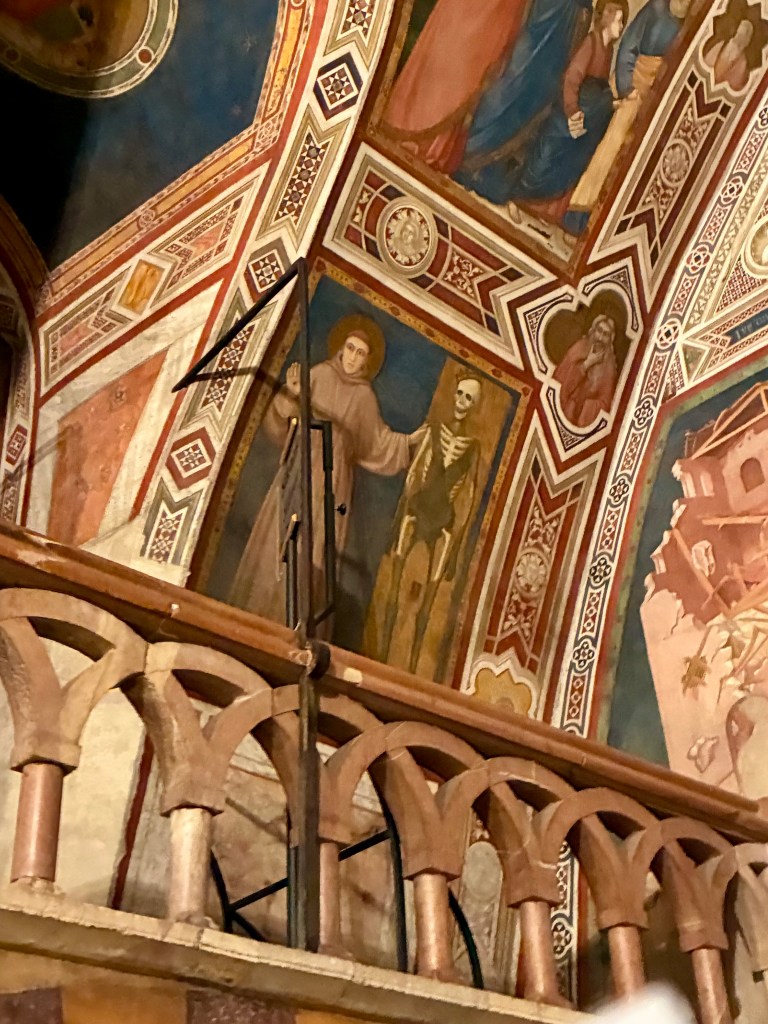 Not too far from the fresco of the Raising of Lazarus is an image of St. Francis with his right hand revealing his stigmata and his left hand on the shoulder of a skeleton, who represents Death. We were told we couldn’t take any pictures and when I asked why, the friar told me it was simply because it would just take up too much time. So, I very quickly snapped a photo of this fresco of St. Francis and Death, which felt especially apt after visiting his own skeletal remains on my birthday during this season of Lent, when we are reminded of our mortality, when we are reminded that we are all but dust and to dust we shall return. Today’s readings about bones and death and resurrection echo this reminder.